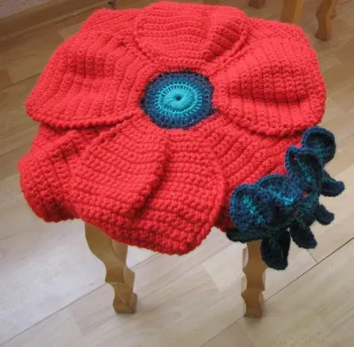 на одну сидушку необходимо около 3 мотков пряжи Ализе Суперлана Макси(темно-красная) или ЯрнАрт Мерино Балки(алая) , немного Семеновской (темно-зеленая), совсем немного хлопока (светло-зеленый) и фактурной пряжи «Кристалл»(черная).