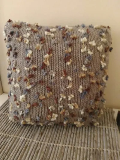 Очень уютные подушечки! Пряжа такая интересная, как будто и правда меленькие цветочки.