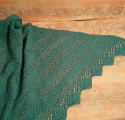Скоро у сестрёнки день рождения, и она ещё не знает, что со дня на день к ней отправится эта шалюшка из турецкой ангоры. Мне понравился цвет пряжи - что-то среднее между мятой и аквамарином. Ломаю голову, какое же имя ей дать?