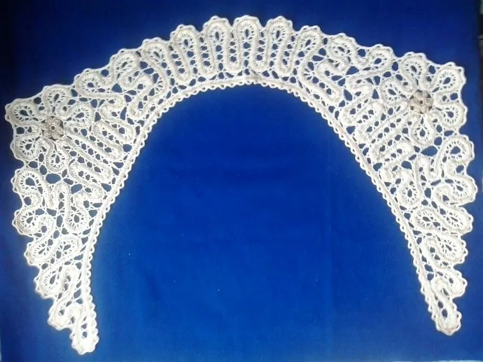 Воротничок связан крючком из тонкого хлопка № 10.Бежевого цвета,отделка тулип (цвет золото).Брюггское кружево крючком.