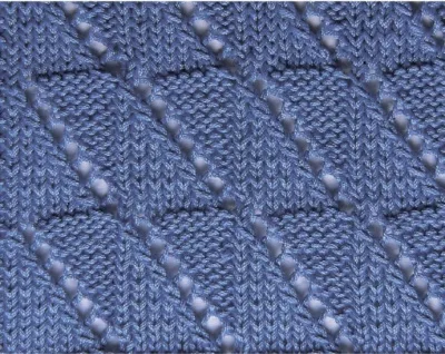 7-й ряд: * 3 изнаночные, 1 накид, 2 п. провязать вместе с наклоном влево, 3 лицевые, от * повторять.