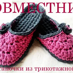 Совместное вязание тапочек из трикотажной пряжи