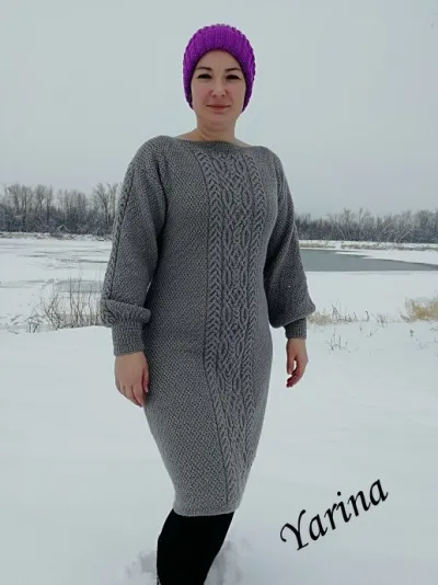 За время моего отсутствия получилось связать еще и платье. Оно связано из пряжи Vita «Alpaca Wool», ушло около 800 г. Вязала спицами N 2.5