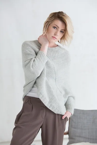 - Пряжа фирмы YARN Toft DK, в составе 100 % шерсть. Подходящий нежный цвет # 11946 silver. Необходимое количество клубков от 4-6 штук.
