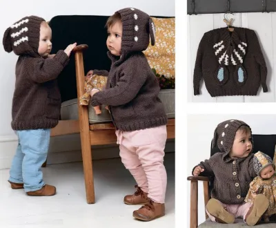Пряжа Sandnes Garn Alpakka Ull (65% шерсти альпака, 35% шерсти; 100 м/50 г) – 250 (250–300) 350 г коричневой (№ 3161), по 50 г для каждого размера пыльно-розовой (№ 3511)/серо-зеленой (№ 7212) и белой (1002); круговые спицы № 4,5 и 5; чулочные спицы № 4,5 и 5; маркеры для разметки петель; 6 (6–7) 7 пуговиц.