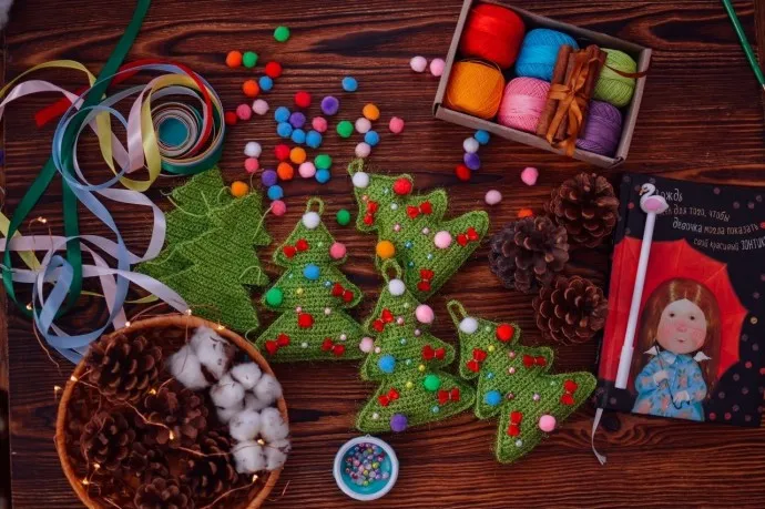 Вязаная ёлочка - просто, но милый аксессуар для нового года!
