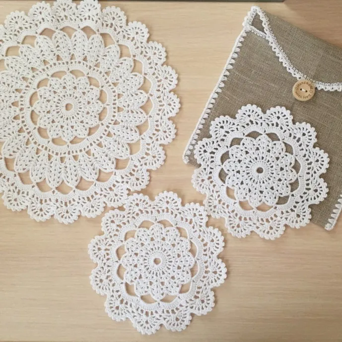 Очень простенькие, но эффектные салфеточки.Я такую вязала из пряжи Пеликан-получилась диаметром 17 см.