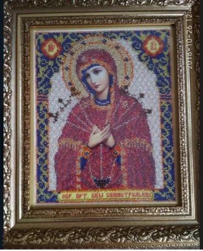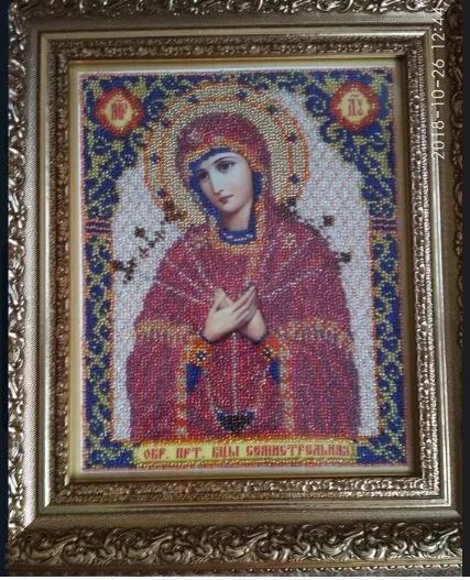Богородица Семистрельная вышита чешским бисером, получила благословление.