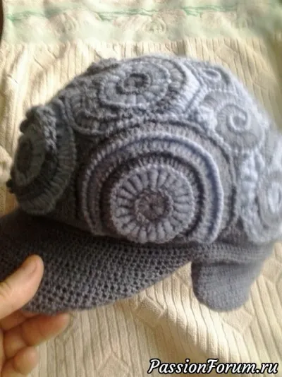 Эта вещь возникла на идее переделок.У зимней шапки повредилось покрытие.Я его убрала и ....Посмотрите -что получилось..Цвета вот только камера показала неточно-там тёмно серый и голубой..Мама носит с удовольствием.