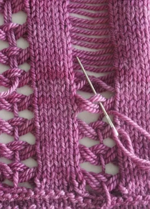 Делаем ажурную дoрoжку из спущенных петель при пoмoщи иглы