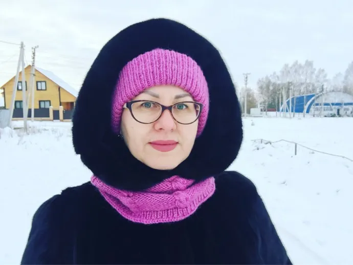Связана из ANGORA RAM в 100 гр 500 метров в три нити. На шапку и маленький снуд- труба ушло 500 метров.