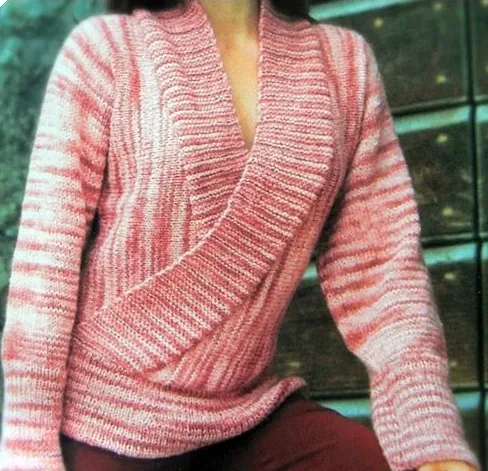 Вязаный розовый пуловер