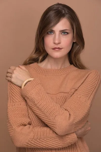 Пуловер по фигуре с рельефными узорами и кокеткой, отделанной шнуром