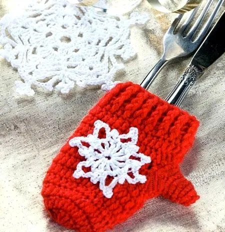 Варежка для столовых приборов - вяжем красивый аксессуар!