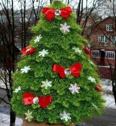 Т.е. если вы обратили внимание, с 5 ряда практически постоянно прибавки по 7 петель через ряд. Количество петель постоянно кратно 7, поэтому прибавки получаются равномерными. Я привела прибавки до 23 ряда. если нужна ёлочка повыше, то аналогично продолжать можно сколько угодно :). В результате получаем конус-заготовку для вывязывания веточек.