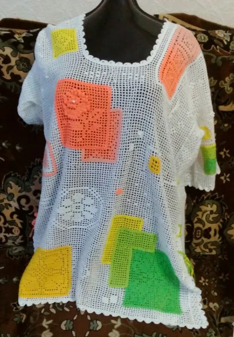 Готовлюсь к лету.Туника пэчворк Летний калейдоскоп (филейное вязание)