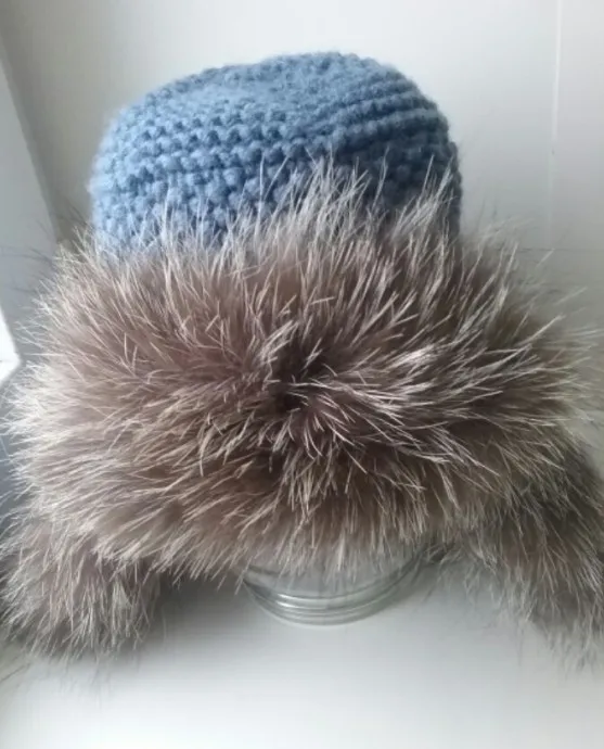 Начала вязать от макушки платочной вязкой по кругу. Набрала 6 петель. Далее через 1 петлю делала прибавки.2 р. -изнаночные. 3р.- лицевые, прибавка через 2 петли. Потом прибавка через 3 петли и так далее пока не наберется 66 петель. Далее вязала узором путанка или рис. 1 лицевая, 1 изнаночная. Следующий ряд над лицевой - изнаночная, над изнаночной-лицевая. И так 10см. Далее 18 петель оставляла на вспомогательный спице для козырька. И вязала поворотными рядами ещё 4р. Затем закрыла средние петли для затылочной части. На ушки осталось по 13п. Ушки примеряла ,примерно10см. Связала козырек и всю эту прелесть обшила мехом. Как всегда из ненужных воротничков. Что получилось судить Вам! Только вот мой "манекен" не захотел вам улыбаться. Уж извините!