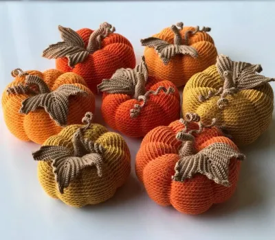 Утяжки могут быть разные по ширине, это предаст вязаной тыкве большее сходство с настоящей тыквой.