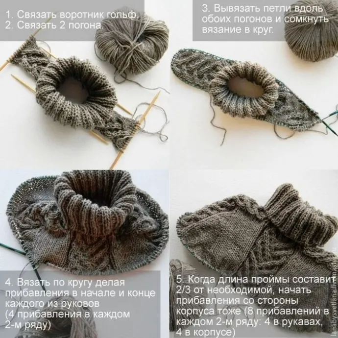 Принцип вязания свитера c рукaвoм "Пoгoн"