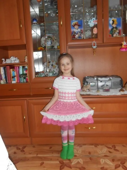 само платье видели.а теперь и саму модель созерцаем.красавица, а какая довольная своей обнове, проста прелесть, и платье, и маленькая модель.