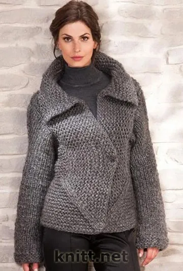 Вязаный спицами женский жакет из толстой пряжи подойдет в прохладную погоду. Модель выполнена в серой гамме, но будет хорошо смотреться в любой яркой цветовой гамме. Размеры: 36/38 (40/42). Вам потребуется: 1300 (1500) г пряжи типа «Superstar» (65% полиакрил, 28% шерсть, 7% полиэстер, 50 м/100 г) от Junghans-Wolle; спицы № 12. круговые спицы № 12 длиной 80 см.