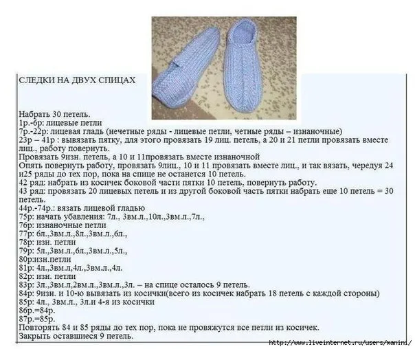 Тапочки,связанные на двух спицах.