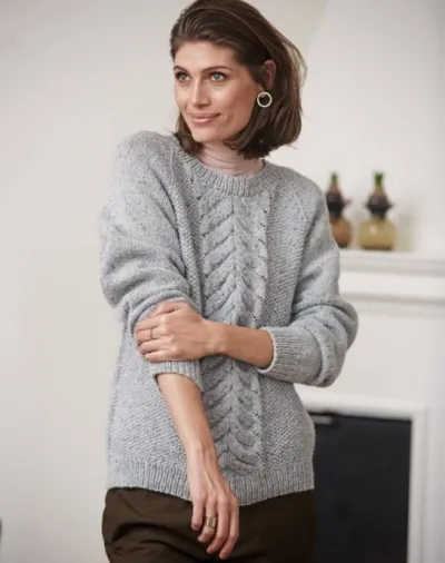 Серый джемпер с широкой косой