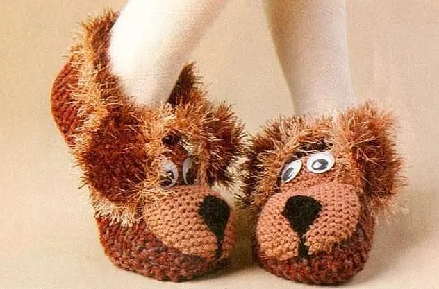 Вяжем объемные тапки "Веселые собачки"
