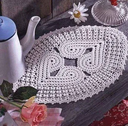 Неправда ли, необыкновенно красивая салфетка крючком с сердечками, смотрящими друг на друга?