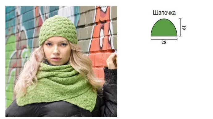 Описание и схемы вязанияРазмер: окружность головы 56 см.Ширина шарфа 22 см, длина 88 см. Вам потребуется: 300 г пряжи голубого цвета (50% шерсть, 50% акрил, 300 м/100 г), спицы № 3, крючок № 3. Резинк...
