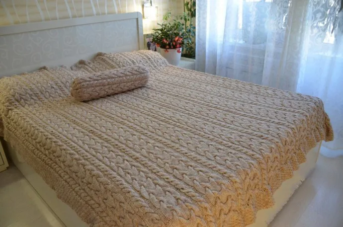 шикарный плед, не только по вязанию, но и по цене, это сколько ниок нужно, да и подушка есть, класс