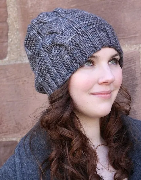 Вяжется по кругу круговыми спицами, при формировании макушки следует перейти на чулочные спицы для удобства. Дизайнер Caryl Pierre. Описание для размеров: S, (M, L). Окружность головы: 51 (56, 58) сантиметров. Пряжа: типа The Sanguine Gryphon *( 100% шерсть; 154м\113г) – 145 метров. Спицы: круговые спицы5,5 мм , длина 40 см; чулочные спицы 4 мм; спица для кос. Придерживаться плотности: 18п х 28р = 10 см платочной вязкой спицами 5,5 мм. Узоры: Резинка 2 х 2: 2 лицевые, 2 изнаночные – попеременно.