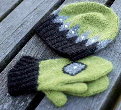При необходимости можно увеличить размер шапочки и варежек, для этого взять спицы на 1/2 номера толще.