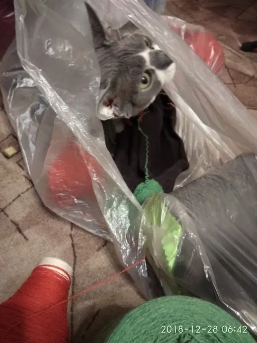 Уже четвертый год мучаюсь.что связать из итальянского бобинного супер яка.У меня 4 цвета.коричневый.кирпичный.серый и зеленый.Пряжа очень мягкая после стирки,теплая.но хлипкая.при натяжении рвется.даже котик пытается помочь мне в муках выбора.