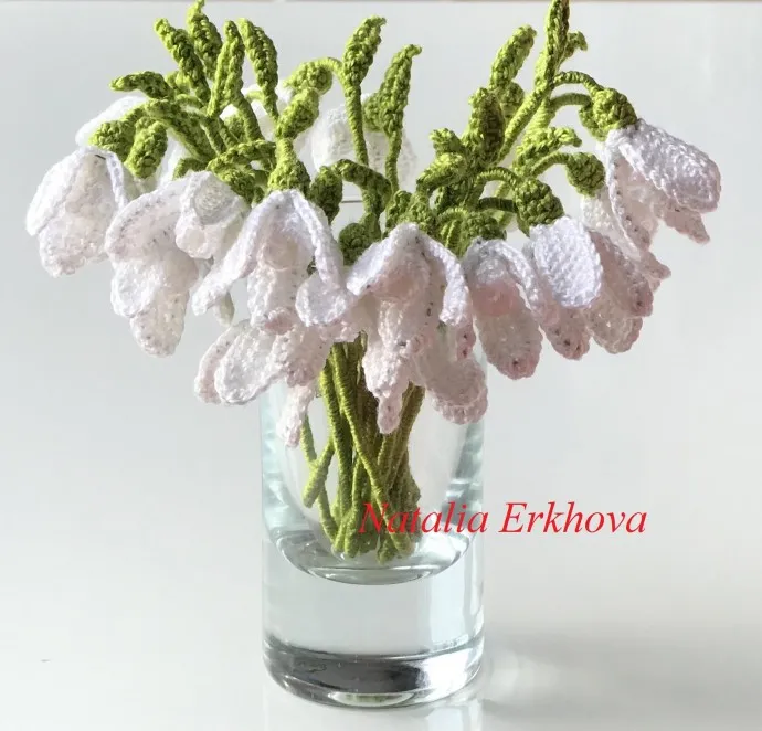 Подснежники связаны крючком. В букете 23 цветка. Размер подснежников от 10 см до 12 см. Идея и схема мои.
