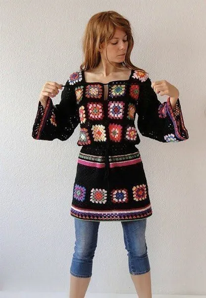 Платье-туника из бабушкиных квадратов