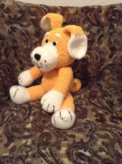 Собачка просто невероятная получилась, такая желтая, позитивная, мне очень нравится!