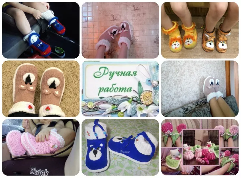 Доброго дня, всем! Как то незаметно увлеклась вязанием обувочек для больших ножек :)! Детки так быстро растут, но хочется ещё чуть чуть продлить детство, добавить радости и яркости в нашу жизнь! Я сделала проект "Наши ножки подросли!" Так забавно смотрятся на подросших ножках мои Автошки, Зайчата, Львята , Медвежата :) . Когда пинеточки связаны для совсем крошки, они больше интересны для родителей и окружающих. А детки постарше просто в восторге от забавных носочков! Многие малыши не хотят расставаться с ними даже во сне . А для подростков это ещё одно возвращение в детство.. Это уже не пинетки, но и не тапочки, скорее всего носочки для тёплого уюта холодной зимой! И совсем не помеха подросший размерчик ножек, от 14 до 22 - 27см. Ещё, очень рады яркому кусочку детства мамочки, и даже бабушки, для них связаны не только забавные зверюшки, но и практичные, очень нежные и тёплые носочки из Хлопок - травки Камтекс! Я очень рада, что расширилась география для моих вязалочек! Теперь это не только наша огромная Россия, но и Грузия, Германия, Франция, Финляндия!