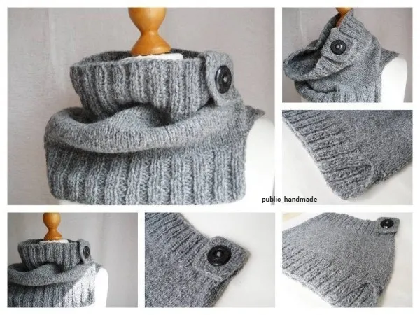 Вяжем стильный шарф-снуд с крупной пуговкой