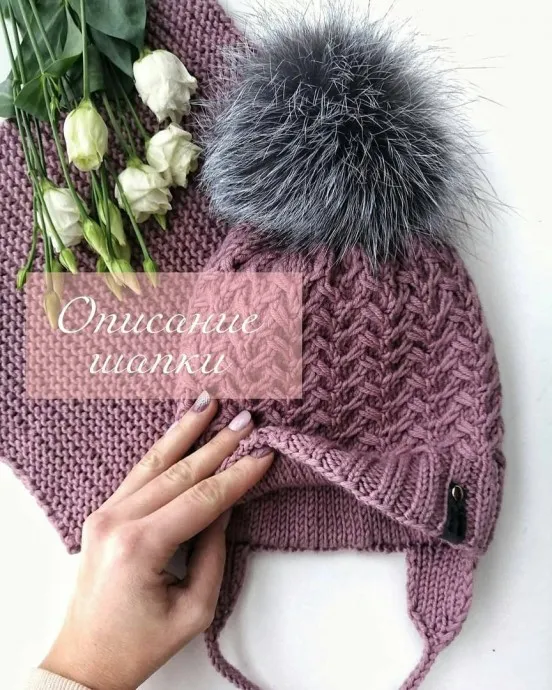 Вяжем нежную шапочку с меховым помпоном