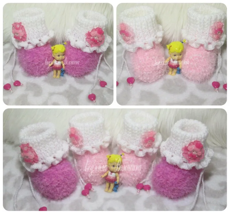 Для Принцесс - сестричек тёпленькие, нежные пинеточки. Связаны из пряжи Малинка Колор Сити + Голд Ярн Арт.