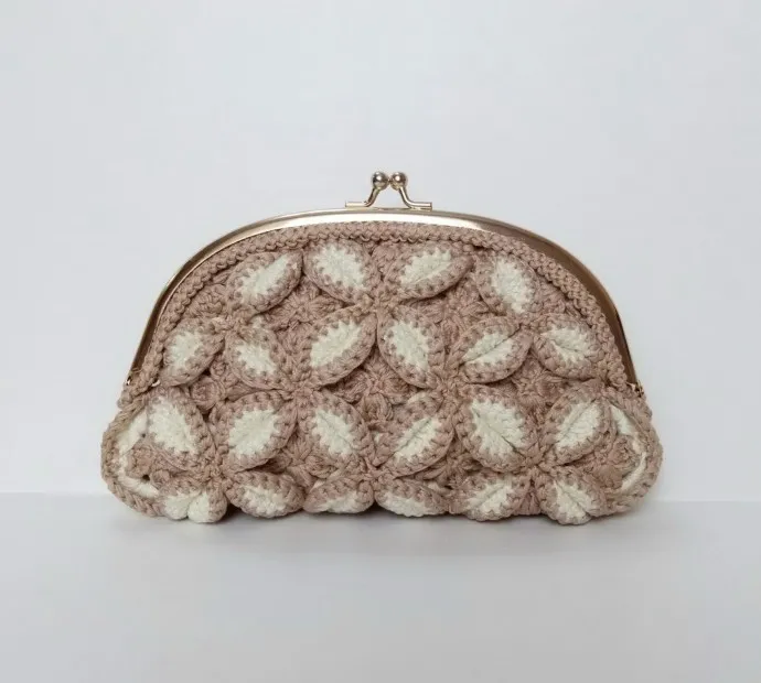 Небольшая сумочка выходного дня или большая косметичка на фермуаре. Связана из хлопковой итальянской пряжи.