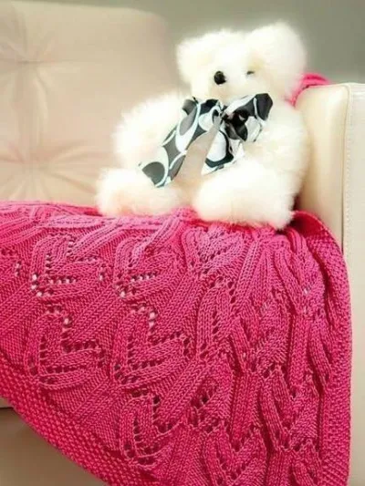 Ажурный плед спицами с узором сердечки порадует вашего малыша. Такое покрывало станет отличным подарком!Набрать количество петель кратно 24 + по 8 петель с каждой стороны для планок. Первые 12 рядов в...