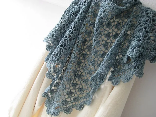 Легкая в исполнении шаль вяжется моментально, буквально за несколько вечеров. Простой классический узор из рогаток и ракушек великолепно смотрится в пряже с меланжевой окраской.