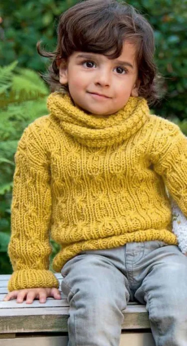 Размеры: 80/86 (92/98) 110/116. Вам потребуется: 300 (350) 350 г жёлтой (цв. 154) пряжи Bingo (100% шерсти, 80 м/50 г) Lana Grossa; спицы № 4,5 и № 5; круговые спицы № 5, 2 вспомогательные спицы.