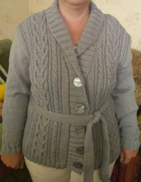 Вязаная кофта с поясом