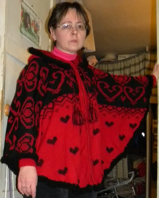Черно-красное пончо