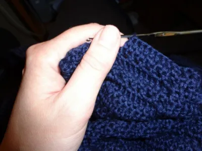 2.поворачиваем вязание и вяжем СБН не под косичку предыдущего ряда, а как бы оборачивая петлей столбик