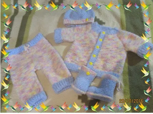 Этот комплект связан из пряжи Ализе Шекерим Беби Батик.К комбинезончику связала шапочку и пинетки.