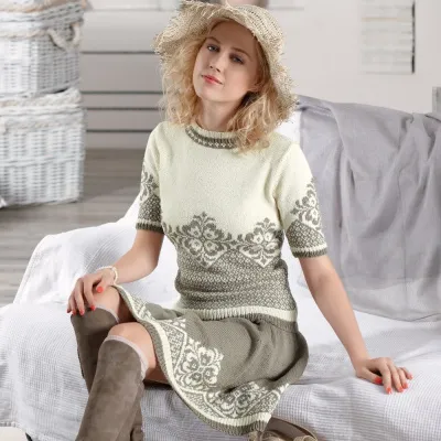 Джемпер и юбка прекрасно сочетаются между собой благодаря цветам пряжи и узорам. Но вы може носить их и по отдельности.